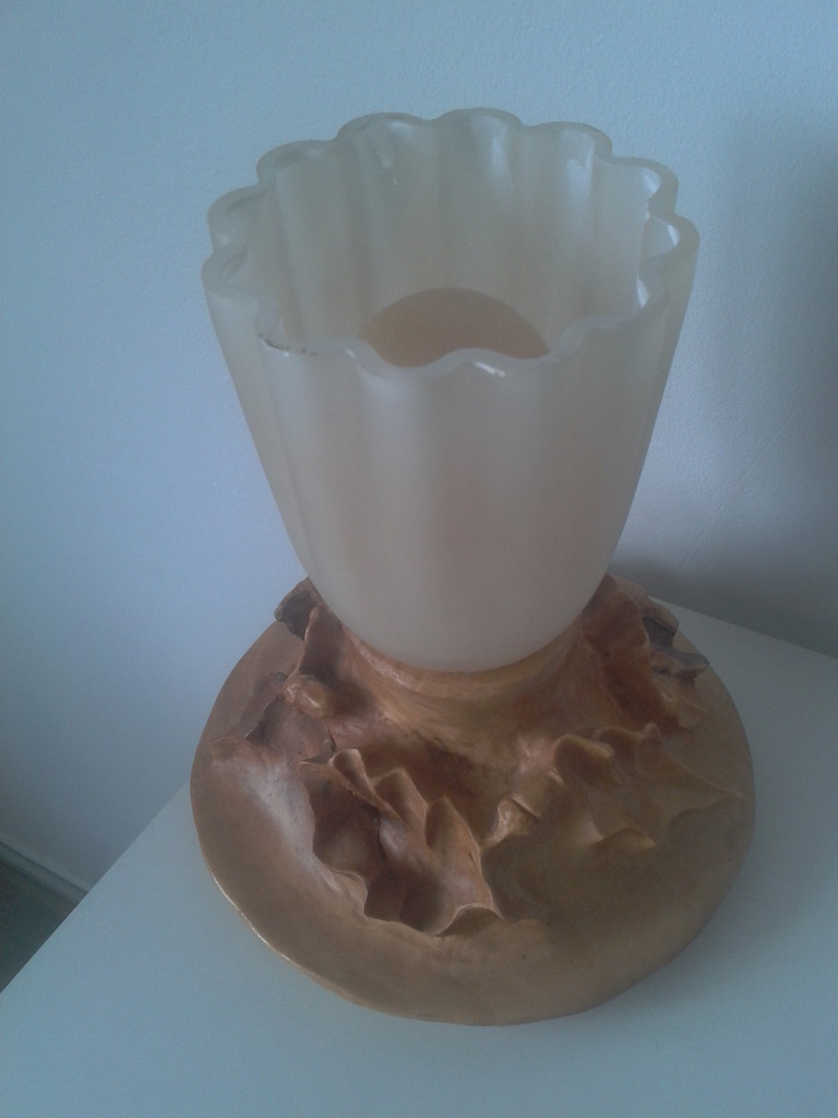 Lampevoet met een rand van eikenblaadjes. Houtsoort: Lindehout.