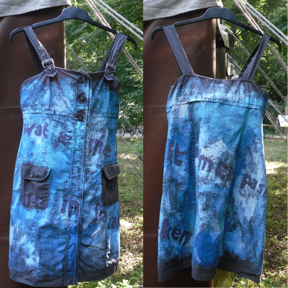WAT JE WILT MEENEMEN PAST NIET IN JE ZAKKEN Oude jurk hergebruikt als drager van nieuw werk.