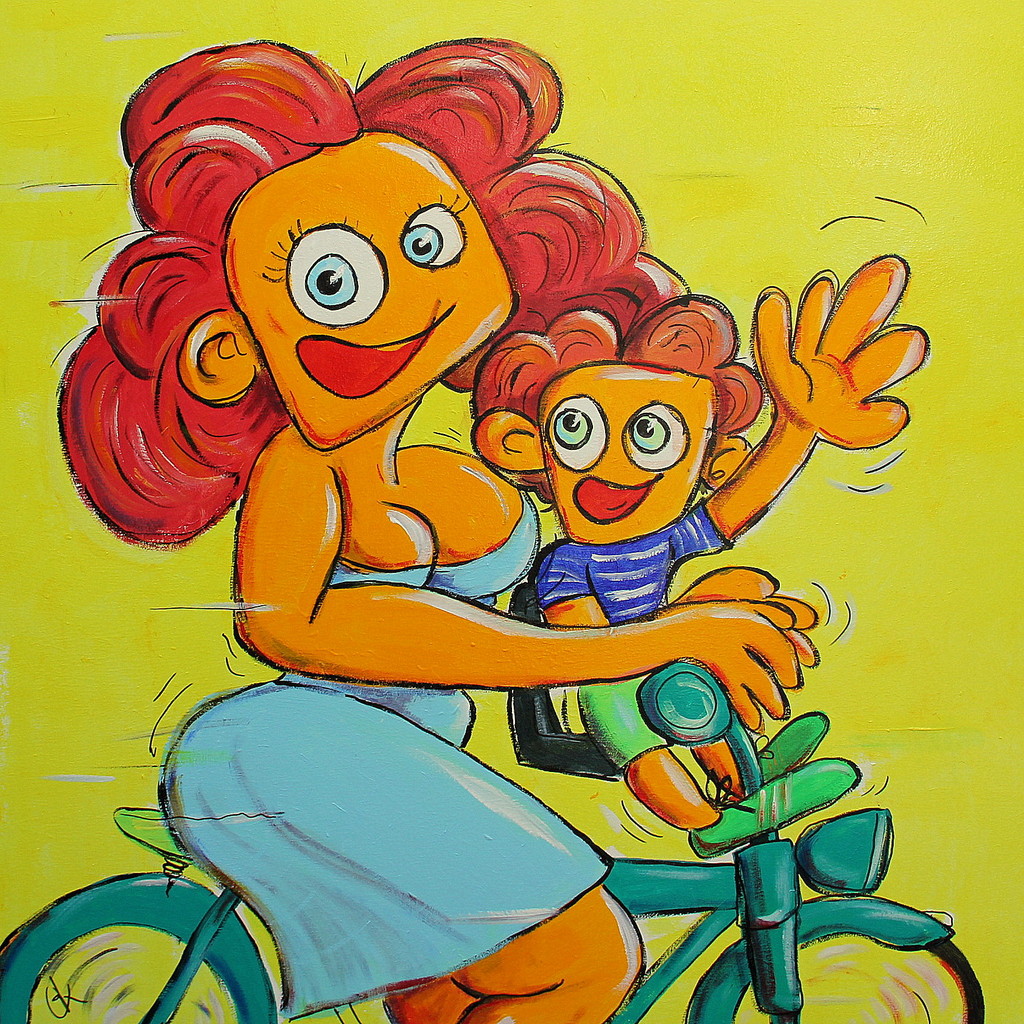 Geel Kind Liefde Kleurrijk Love Vrolijk Fiets Moeder Mother Child Blij Bike Hollands Wave Bicicle Waving Zwaaien