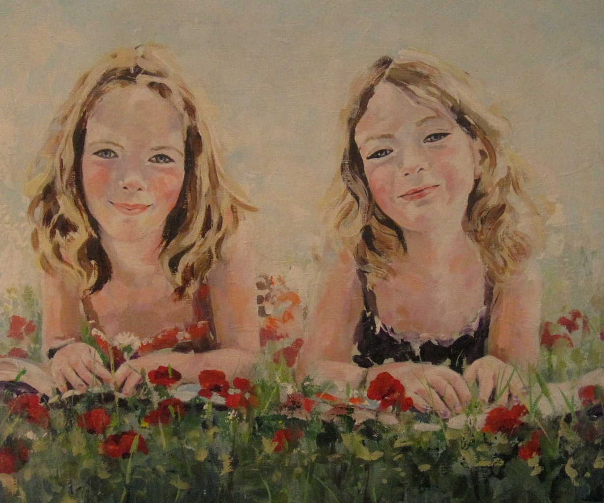 Rode Kind Portret Portrait Klaprozen Gras Meisjes Boek Figuren Liggend Kinderen Tweeling Girls Gemälde Kinder Lezen Kids Twins Bilder Zwilinge