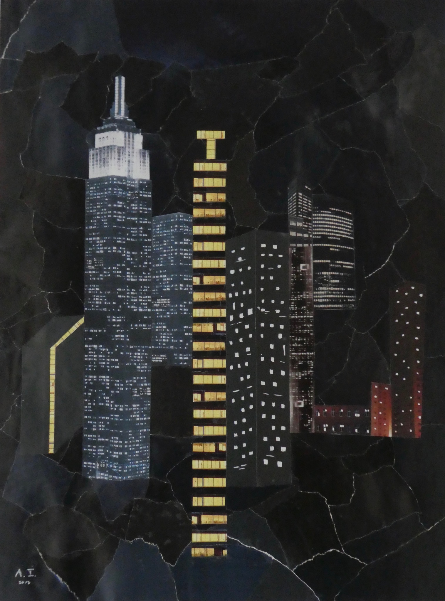 Geel Zwart Yellow Nacht Black Collage Stad Gebouwen City Buildings Night Kerst Christmas Verlicht Lighting