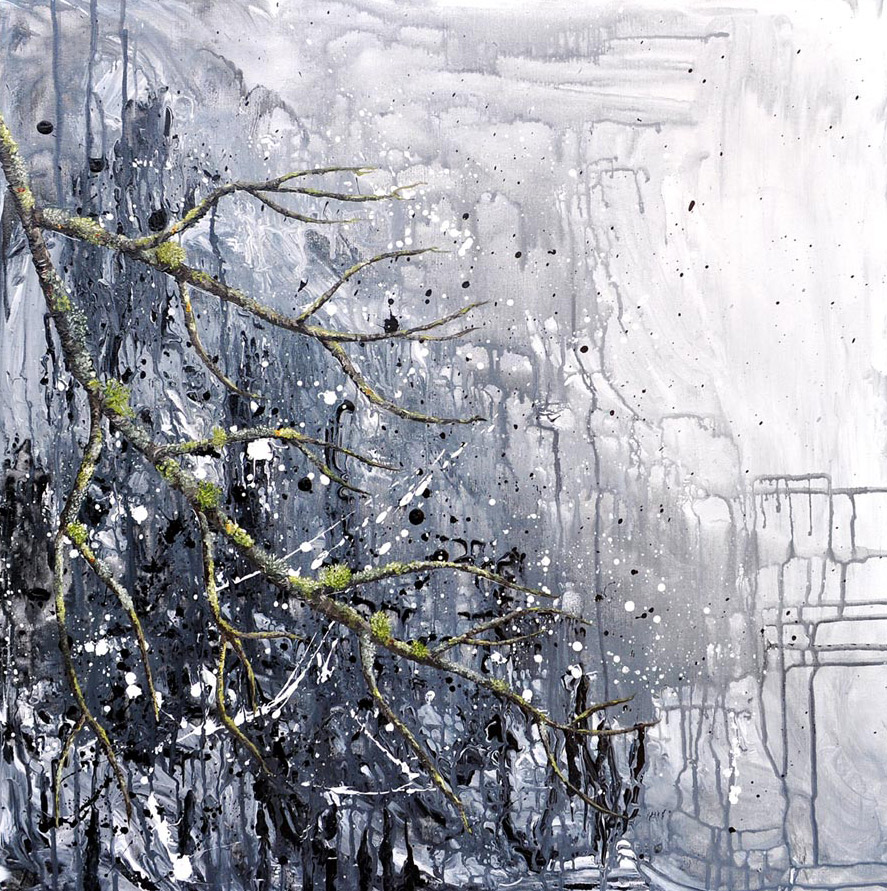 Tak Takken Tree Mos Nature Anita Roosendaal Zwart-wit Ammerlaan Schilderij Wit Grijs Zwart Groen Art Olieverf Doek Kunst Oilpaint Natuur Painting Acrylverf Acrylic Boom Black